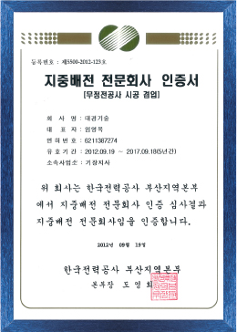- • 신·재생에너지 설비 설치전문기업 신고증명서